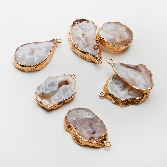 Agat bostwana z druzą plaster nieregularny w okuciu zawieszka 25-35mm