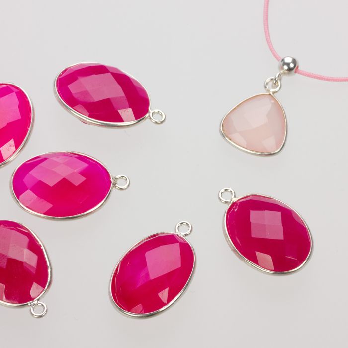 AGat fuksja owal fasetowany zawieszka w okuciu AG925 15x19mm
