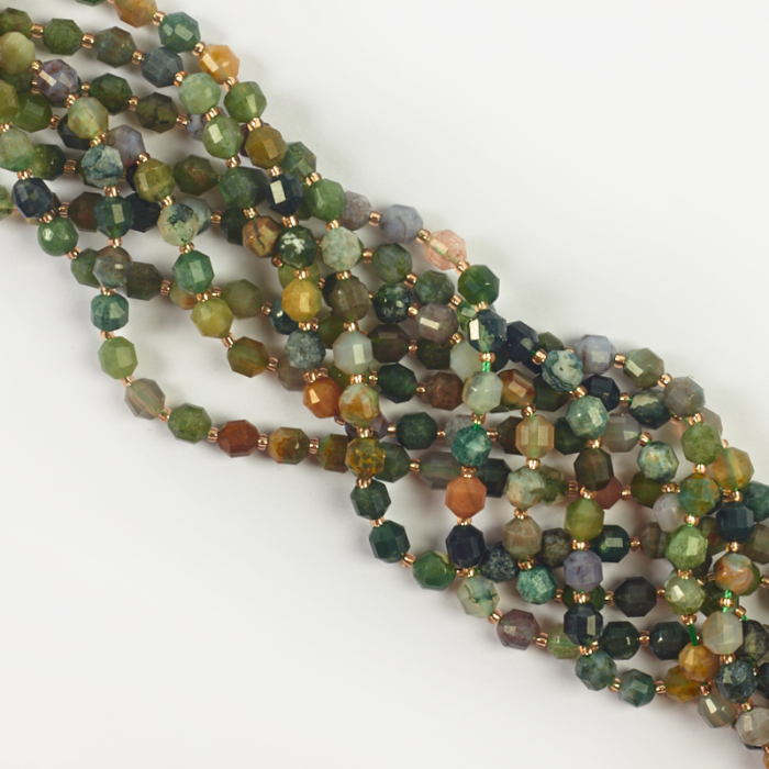 Agat indyjski wyróżnia się tym, że ziemiste, wielotonowe wybarwienie sprawia, że koraliki prezentują się naturalnie i dekoracyjnie. Pięknie łączy się ze stalą, srebrem i innymi kamieniami w autorskiej biżuterii.