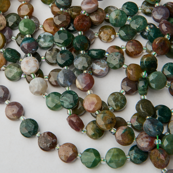 Agat indyjski wyróżnia się tym, że ziemiste, wielotonowe wybarwienie sprawia, że koraliki prezentują się naturalnie i dekoracyjnie. Pięknie łączy się ze stalą, srebrem i innymi kamieniami w autorskiej biżuterii.