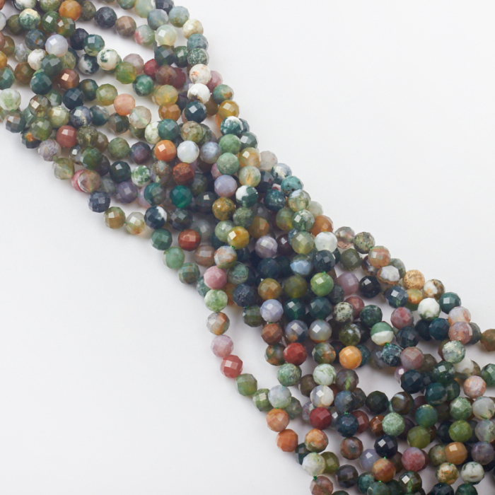 Kamienie naturalne wykonane z agatu indyjskiego w kształcie kulki fasetowanej. Bazowym kolorem jest zielony, jednak niektóre kamienie są w kolorze: różowy, żółty, brązowy, niebieski, czarny, mleczny. Kulki posiadają naturalnie powstałe wrostki oraz przebarwienia.*Ponieważ są to kamienie naturalne mogą się nieznacznie różnić od siebie rozmiarem.*Rozmiar podany w nazwie produktu jest wartością orientacyjną. Charakterystyka:
