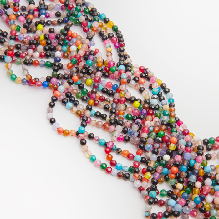 Kamienie naturalne wykonane z agatu w kształcie kulki fasetowanej. Kamienie są w różnym kolorze np.: niebieskim, zielonym, różowym, fioletowym, czerwonym, pomarańczowym, żółtym, szarym, czarnym, niebieskim, białym, mlecznym. Kamienie posiadają naturalnie powstałe wrostki oraz przebarwienia.*Ponieważ są to kamienie naturalne mogą się nieznacznie różnić od siebie rozmiarem i kolorem w zależności od partii produkcyjnej.*Rozmiar podany w nazwie produktu jest wartością orientacyjną. Charakterystyka: