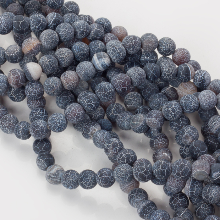 Agat matowy kulka spękana 8mm czarna