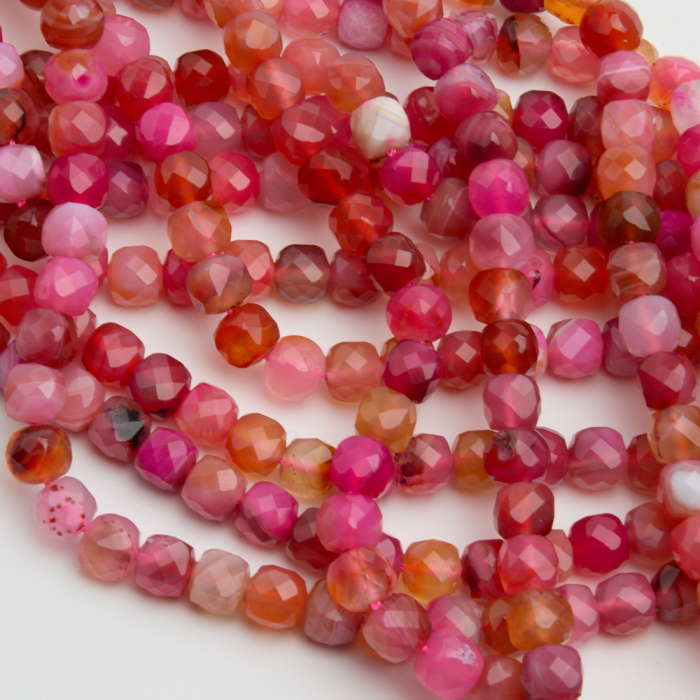 Agat ognisty kostka fasetowana 7mm