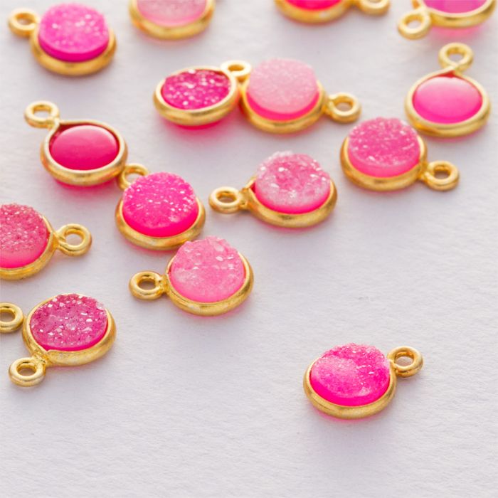 AGat różowy druzy krążek zawieszka w okuciu pozłacanym AG925 8mm