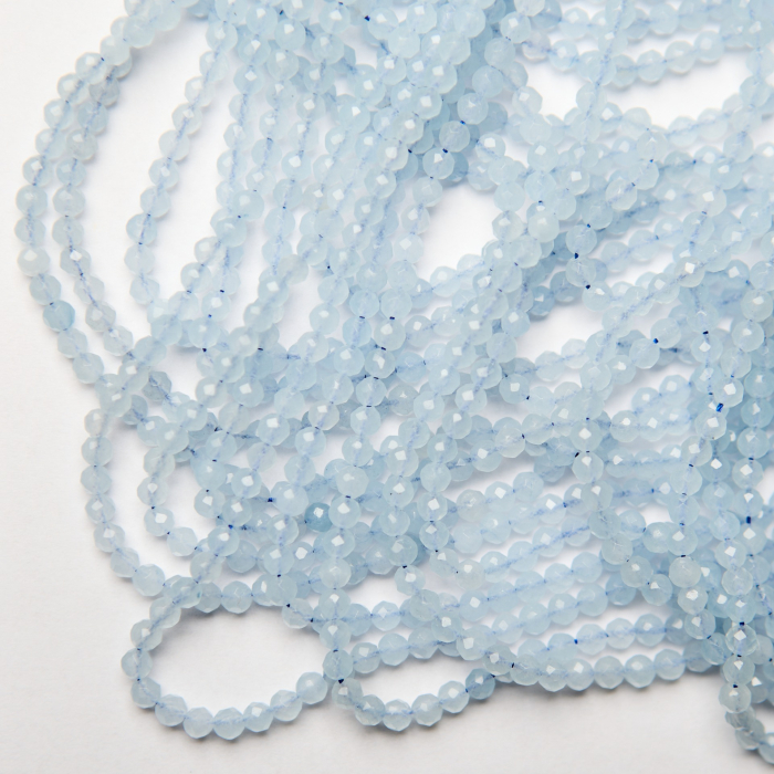 Drobne kulki fasetowane. Kulki mają kolor jasnoniebieski, mleczny, beżowy. Kamienie posiadają naturalne przebarwienia i brązowozłote wrostki. *Ponieważ są to kamienie naturalne mogą się nieznacznie różnić od siebie rozmiarem.*Rozmiar podany w nazwie produktu jest wartością orientacyjną. Charakterystyka: