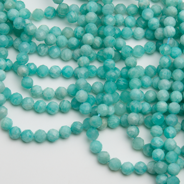 Kamienie naturalne wykonane z amazonitu w kształcie kulki fasetowanej. Dominujący kolor to niebieski, przemieszany z zielonym, mlecznym. Kulki posiadają naturalnie powstałe przebarwienia oraz wrostki.*Ponieważ są to kamienie naturalne mogą się nieznacznie różnić od siebie rozmiarem i kolorem w zależności od partii produkcyjnej.*Rozmiar podany w nazwie produktu jest wartością orientacyjną. Charakterystyka: