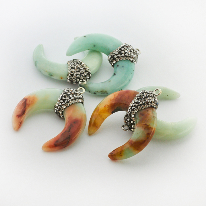 Amazonit róg obfitości z ozdobną krawatką 36mm