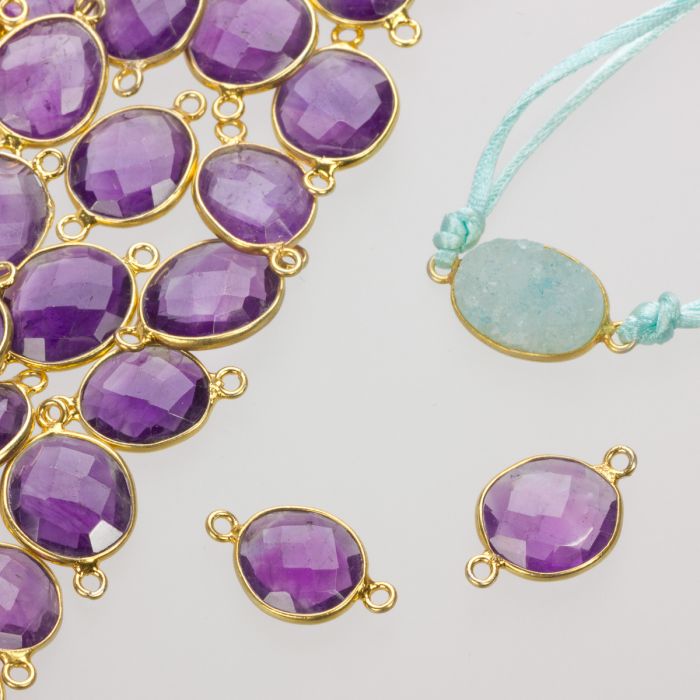 Ametyst fasetowany w okuciu srebrnym AG925 pozłacanym z dwoma oczkami 11-16mm