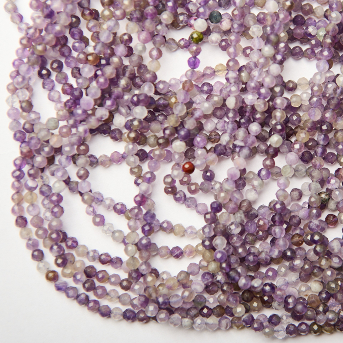 Urocze fasetowane kuleczki naturalnego ametystu.Kamienie delikatnie się różnią intensywnością barwy fioletowej oraz przezroczystością. Charakterystyka: