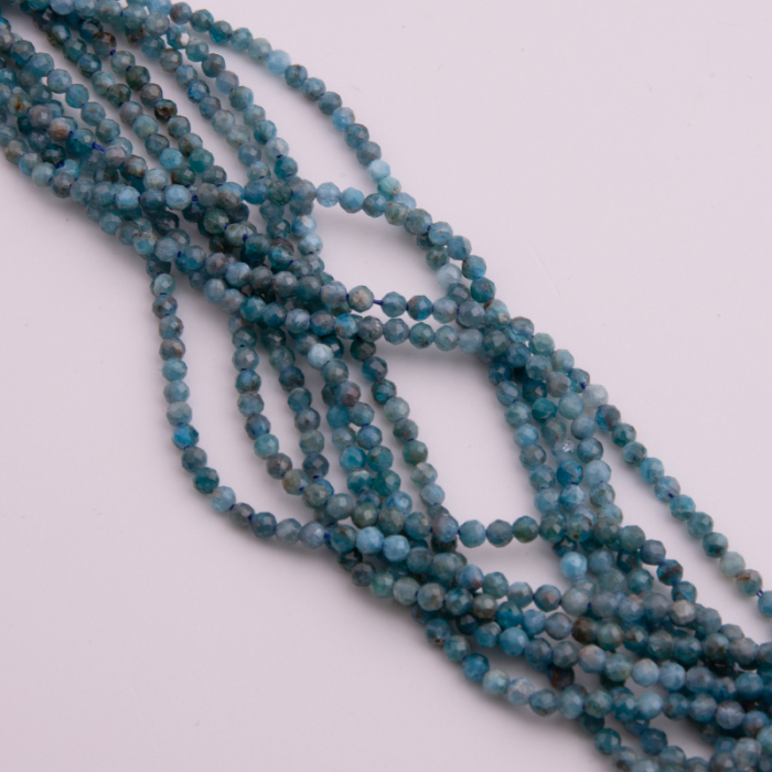Fasetowane kulki apatytu, przezroczyste o lekko niebieskim lub zielonkawym zabawieniu. Kamienie zawierają inkluzje oraz wrostki.*Ponieważ są to kamienie naturalne mogą się nieznacznie różnić od siebie rozmiarem.*Rozmiar podany w nazwie produktu jest wartością orientacyjną. Charakterystyka: