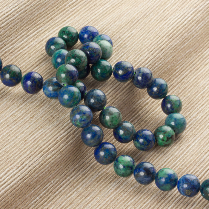 Azuryt kulka wyróżnia się naturalną strukturą, dzięki czemu świetnie sprawdza się w biżuterii handmade – od bransoletek po naszyjniki.