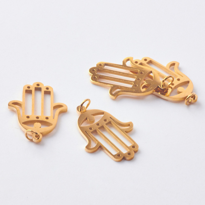 Baza do beadingu ze stali szlachetnej ręka fatimy w kolorze złotym 22mmStal szlachetna to materiał ceniony za trwałość i estetyczny wygląd w codziennym użytkowaniu.W tym produkcie zastosowano stal szlachetną