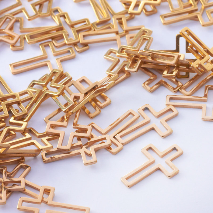 Baza geometryczna ze stali szlachetnej krzyż w kolorze złotym 16x10mmStal szlachetna to materiał ceniony za trwałość i estetyczny wygląd w codziennym użytkowaniu.W tym produkcie zastosowano stal szlachetną