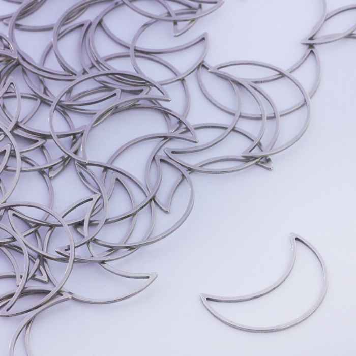 Baza geometryczna ze stali szlachetnej księżyc w kolorze srebrnym 25x18mmStal szlachetna to materiał ceniony za trwałość i estetyczny wygląd w codziennym użytkowaniu.W tym produkcie zastosowano stal szlachetną