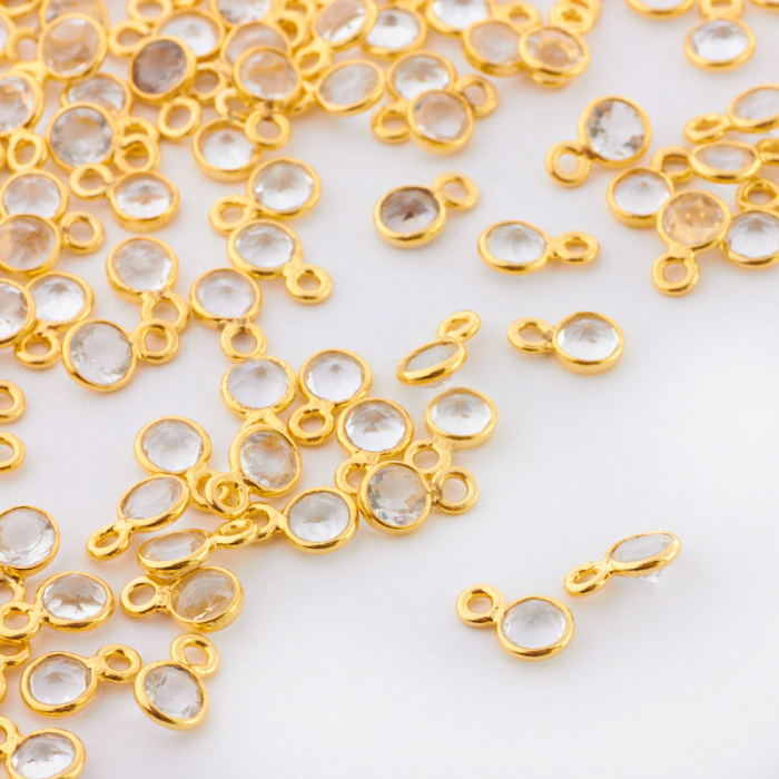 Element wykonany ze srebra próby 925 pokrytego warstwą złocenia galwanicznego łączy elegancki wygląd złota z dostępnością srebra. To rozwiązanie pozwala uzyskać efekt złotej biżuterii przy zachowaniu lekkości i uniwersalności projektu.