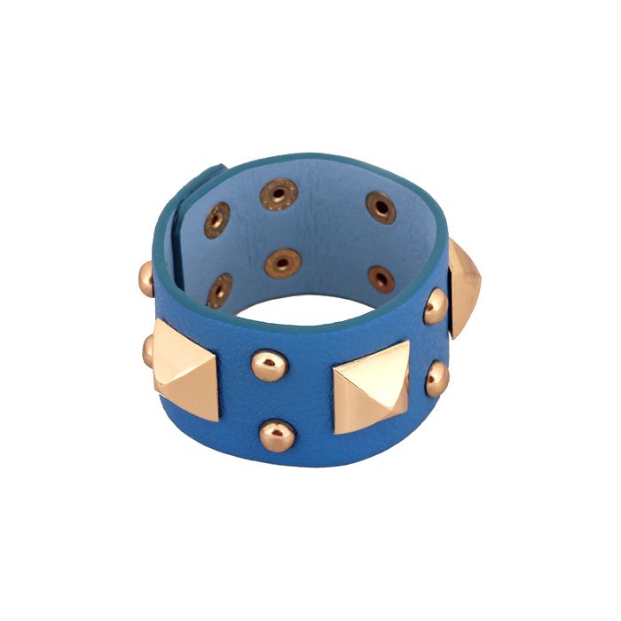Bransoletka duże piramidki na wężowej skórce błękitna 18-21cm