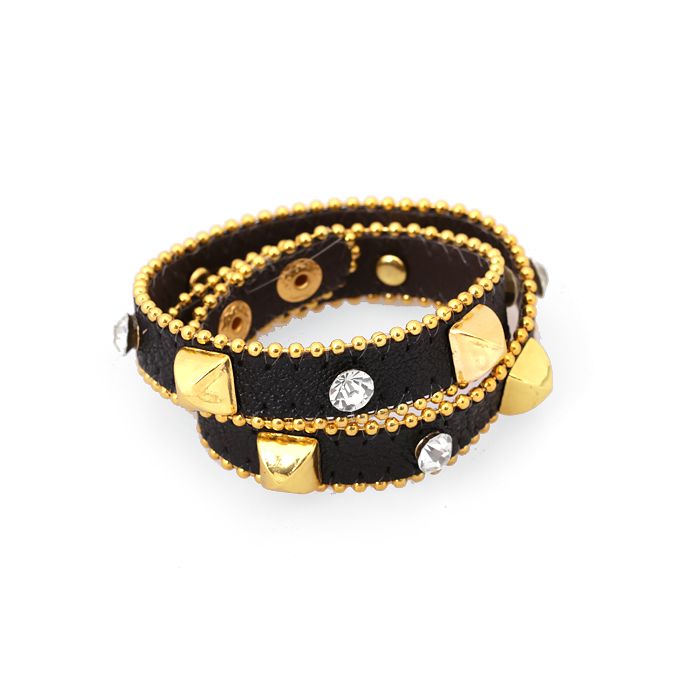 Bransoletka kwadratowe ćwieki i kryształki na skórze czarna