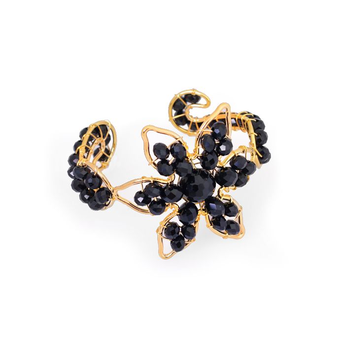 Bransoletka kwiat z plecionych kryształków jet 18-21cm