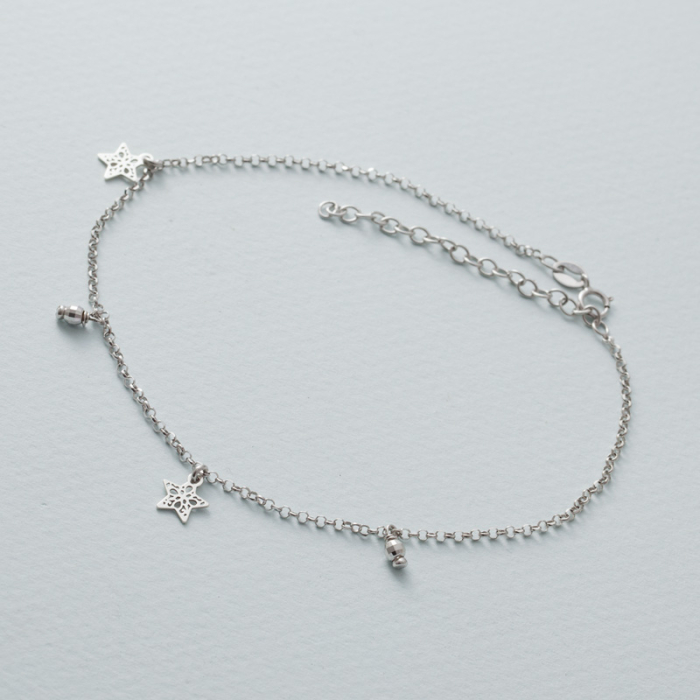 Bransoletka na nogę z gwiazdkami rodowana AG925 23 - 28 cm