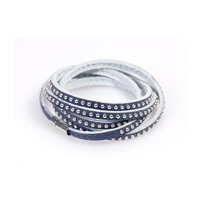 Bransoletka rzemień nabijany ćwiekami granatowa 18-21cm