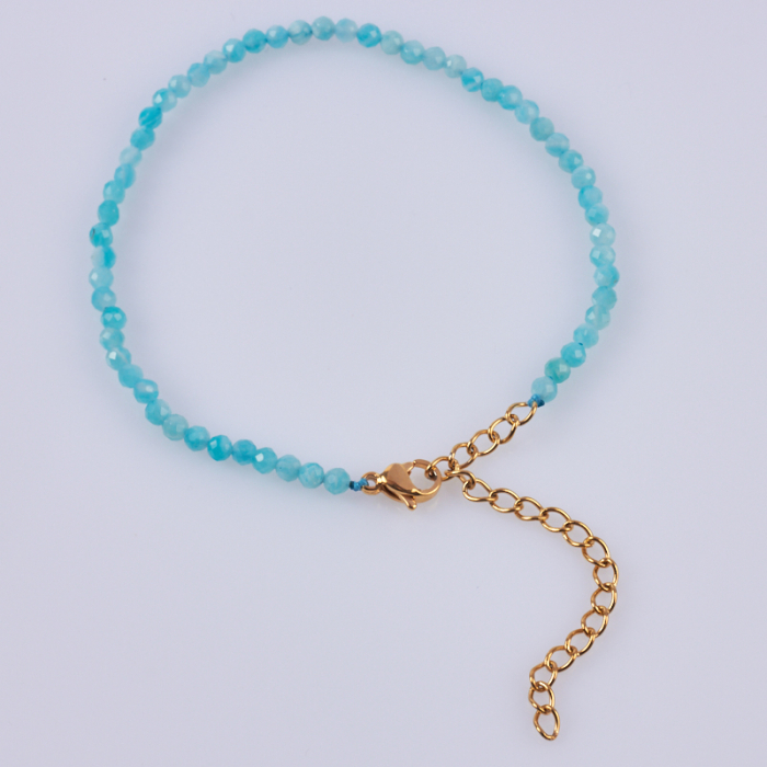 Amazonitu wyróżnia się tym, że morska tonacja i delikatne mleczne przerosty nadają mu świeży, dekoracyjny wygląd. Amazonit dobrze sprawdza się w lekkich naszyjnikach, bransoletkach i kolczykach handmade.