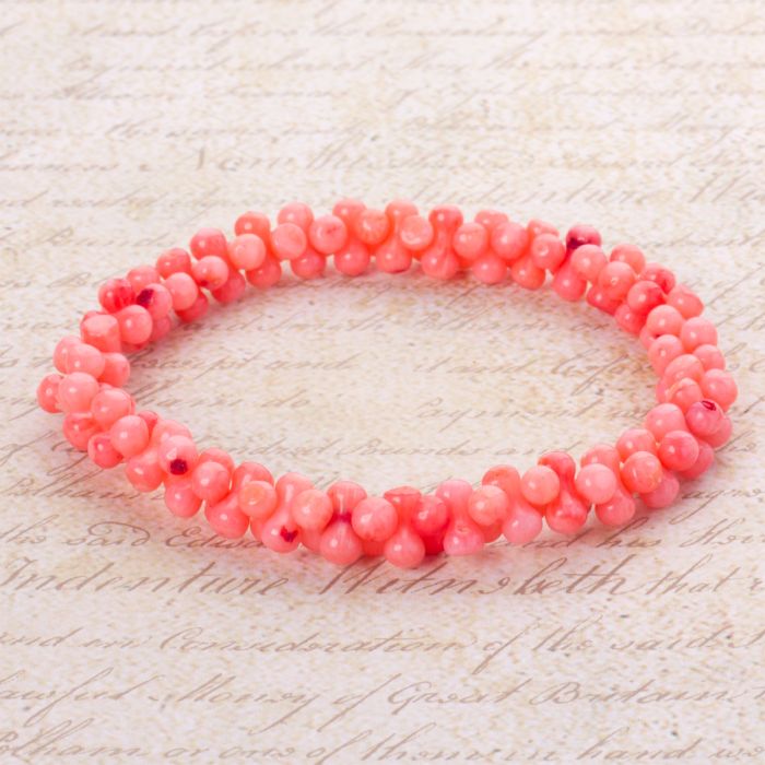 Bransoletka z kosteczek korala na gumce różowa 20cm