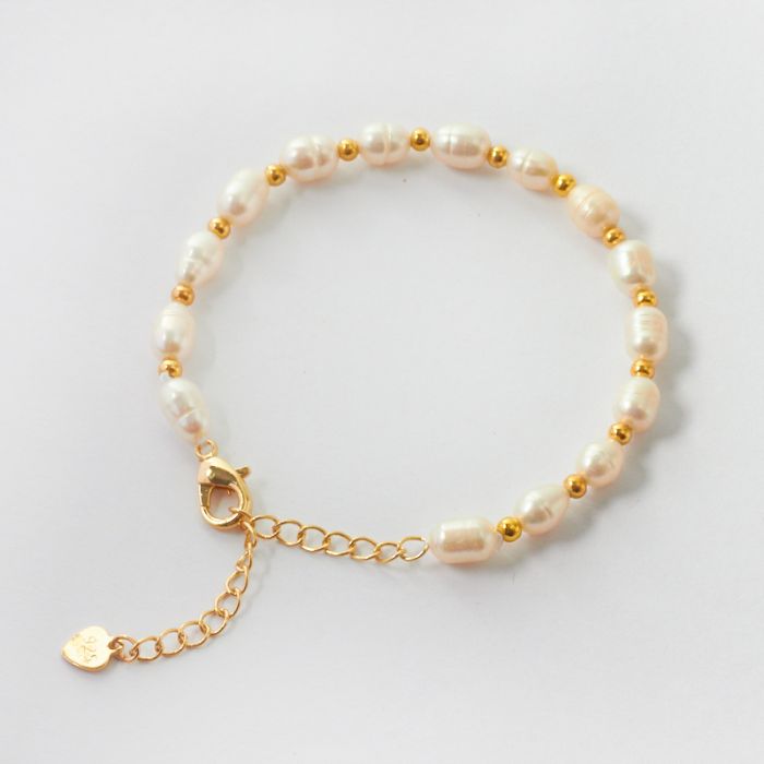 Bransoletka z pereł naturalnych ze złotym wykończeniem 16cm