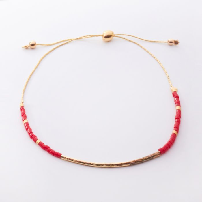 Bransoletka z rurką diamentowaną i czerwonymi koralikami Miyuki