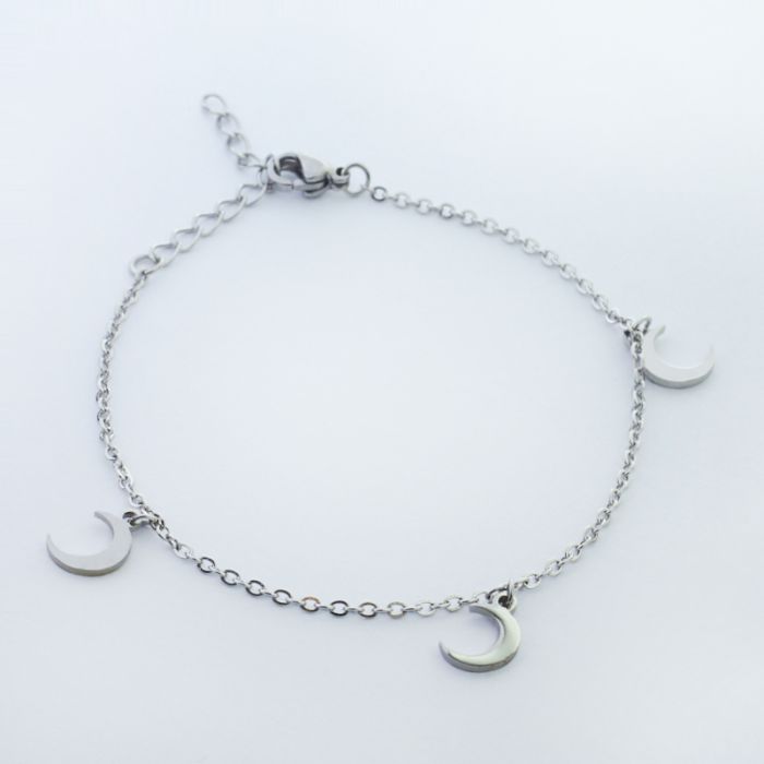 Bransoletka ze stali chirurgicznej z trzema księżycami w kolorze srebrnym 18,5cm