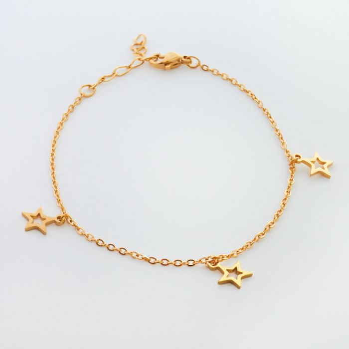 Bransoletka ze stali chirurgicznej z wyciętymi gwiazdkami w kolorze złotym 19,5cm