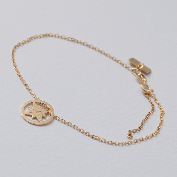Bransoletka złocona z różą wiatrów AG925 17 cm