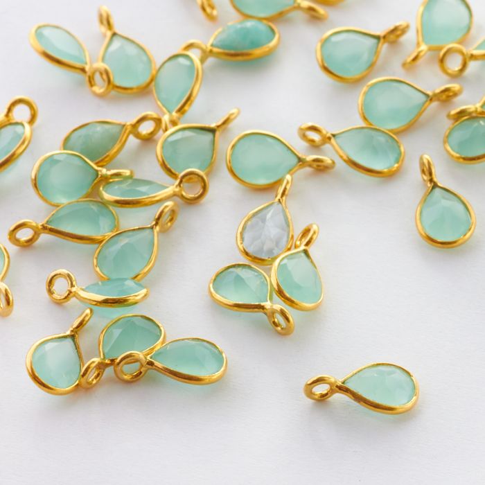 Chalcedon łezka zielona fasetowana w okuciu zawieszka AG925 7mm