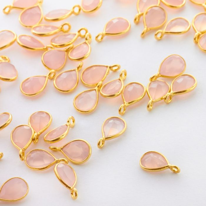 Chalcedon różowy łezka fasetowana w okuciu zawieszka AG925 6mm