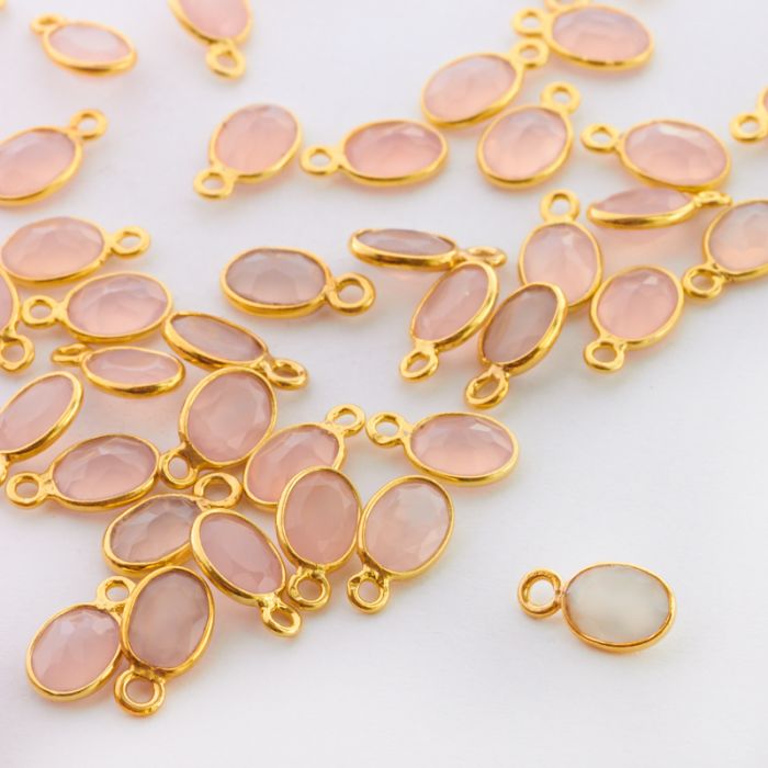 Chalcedon różowy owal fasetowany w okuciu zawieszka AG925 7mm