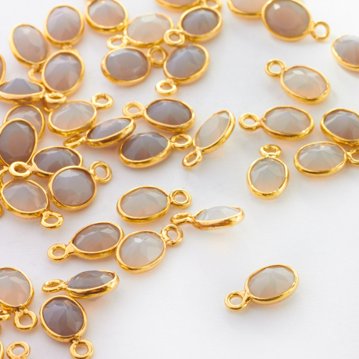 Chalcedon szary owal fasetowany w okuciu zawieszka AG925 6mm