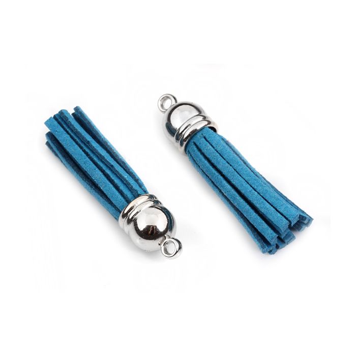 Chwost z rzemienia zamszowego w srebrnym okuciu morski 4cm