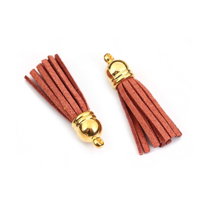Chwost z rzemienia zamszowego w złotym okuciu orzechowy 4cm