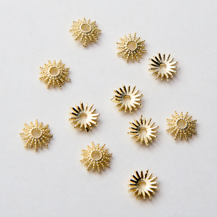 Czapeczka słoneczko do koralików z mosiądzu w kolorze złotym 6mm