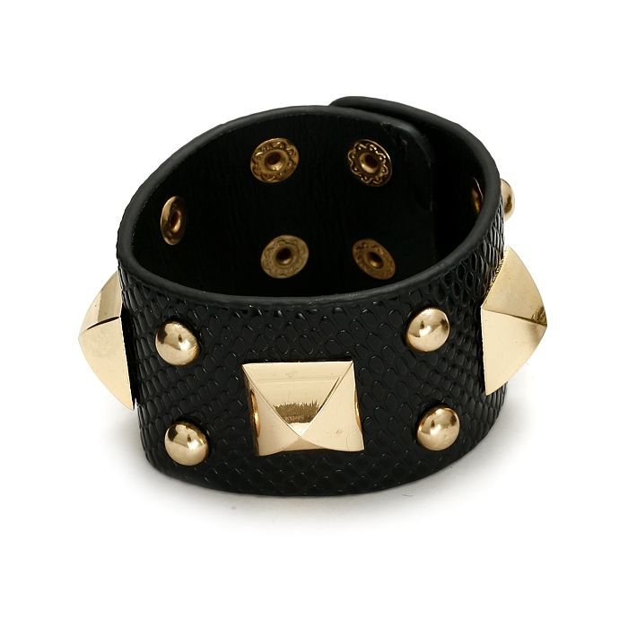Czarna bransoletka duże piramidki na wężowej skórce 18-21cm