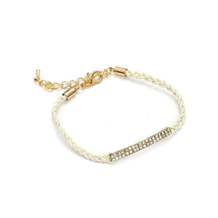 Ecru bransoletka postokąt z kryształkami na rzemieniu 18-21cm