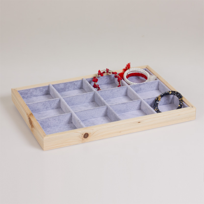 Ekspozytor drewniany 12 komorowy powlekany welurem 35x24 cm