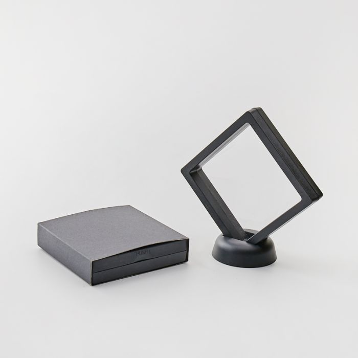 Ekspozytor z membraną ramka 3D czarna z etui i podstawką 9x9cm