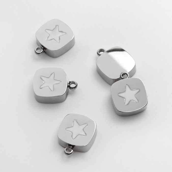 Emaliowana zawieszka ze stali chirurgicznej białą gwiazdką w kolorze srebrnym 11mm