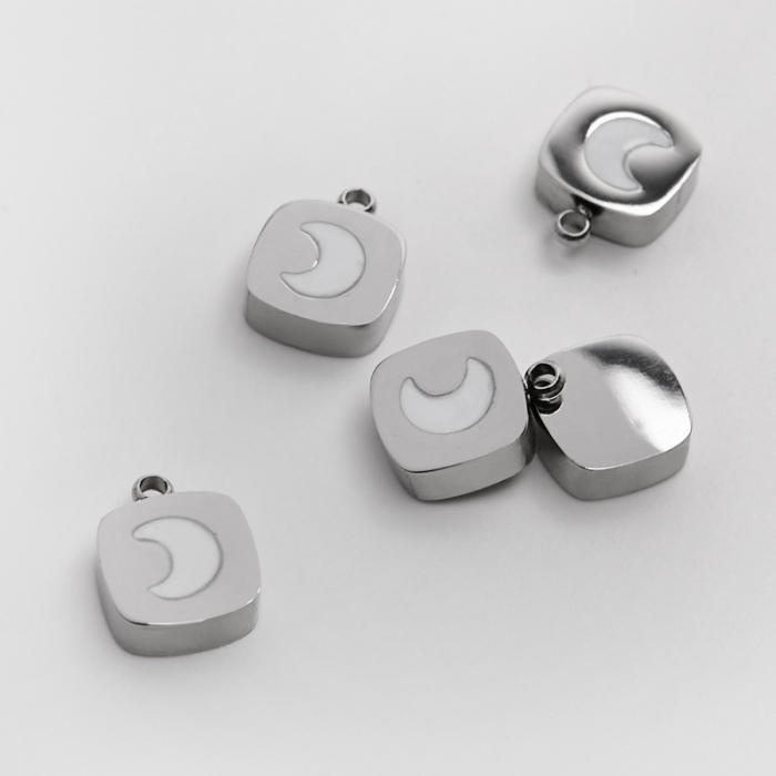 Emaliowana zawieszka ze stali chirurgicznej białym księżycem w kolorze srebrnym 11mm