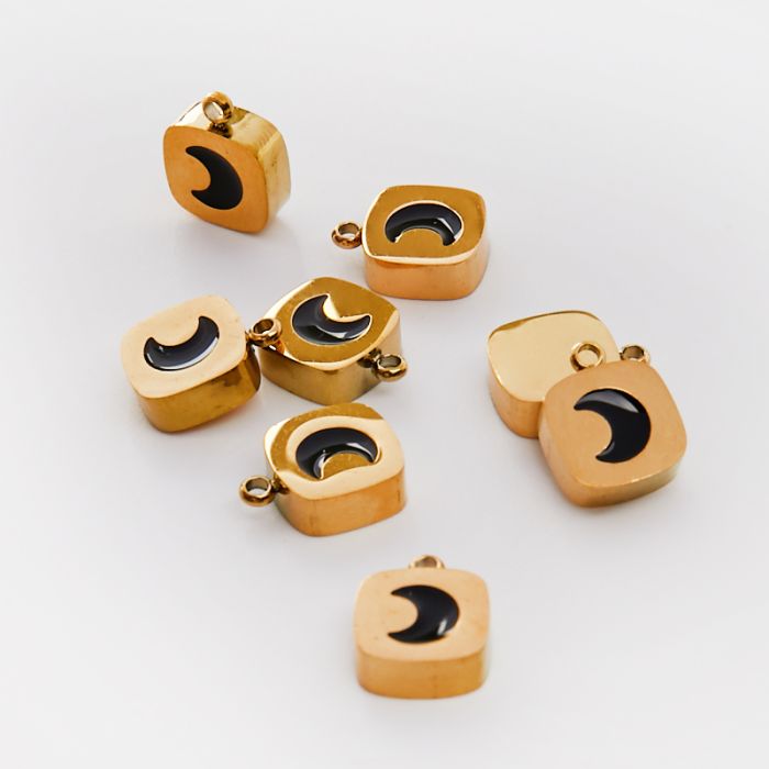 Emaliowana zawieszka ze stali chirurgicznej czarnym księżycem w kolorze złotym 11mm PVD