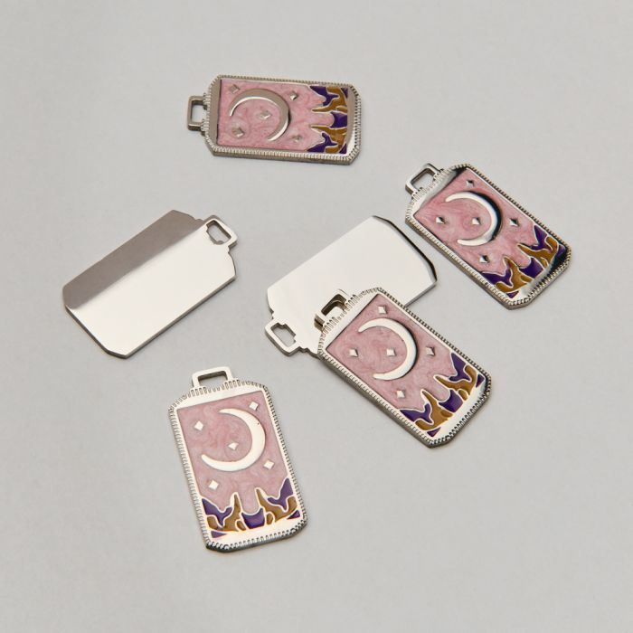 Emaliowana zawieszka ze stali chirurgicznej karta tarota księżyc na różowym tle w kolorze srebrnym 25,5mm