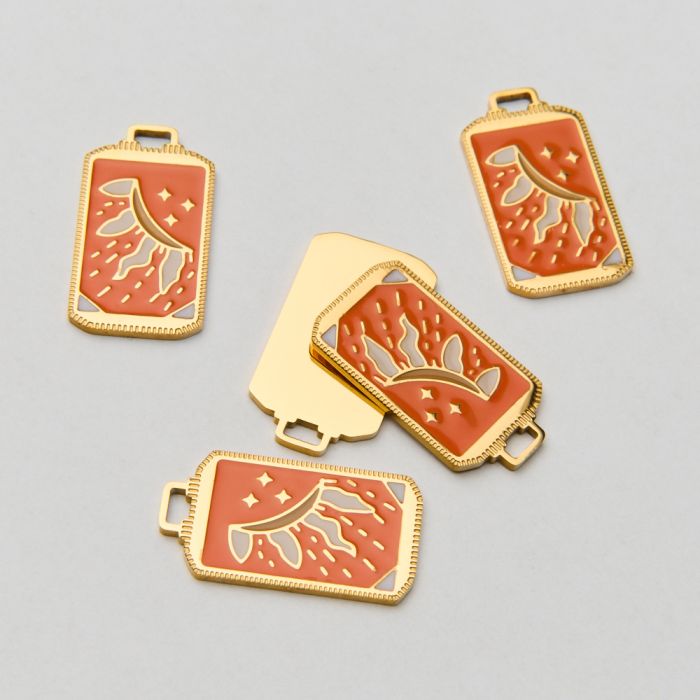Emaliowana zawieszka ze stali chirurgicznej karta tarota palące słońce w kolorze złotym 25,5mm PVD