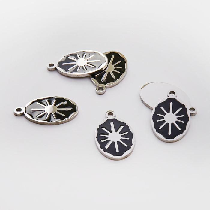Emaliowana zawieszka ze stali chirurgicznej owal ze słońcem w kolorze srebrnym 23,5mm