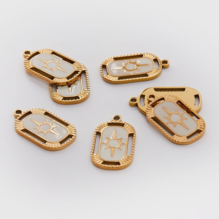 Emaliowana zawieszka ze stali chirurgicznej prostokąt ze słońcem w kolorze złotym 21,5mm PVD